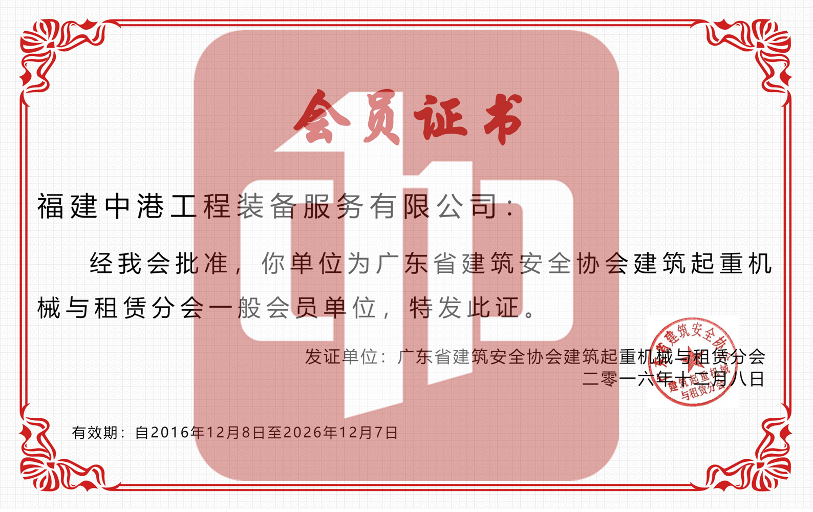 廣東省建筑安全協(xié)會(huì)會(huì)員證書